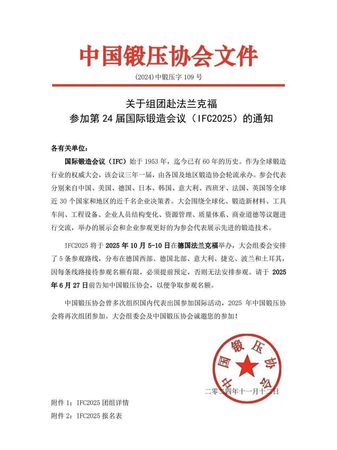 我司憑借在精密鍛造領(lǐng)域的技術(shù)積累和市場表現(xiàn),獲得中國鍛壓協(xié)會的正式邀請,成為本次中國代表團的重要成員之一。這既是對我司實力的認(rèn)可,也是展示中國鍛造水平的寶貴機會。
